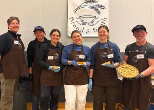 “As ski patrollers, we spend our days working with the sector of the community that frequents the ski slopes,” shared Lucie Gaw, one of the six Ski Patrol members representing the Heavenly Ski Patrol team. “Our job is gratifying, bit it’s easy to forget that there is far more socioeconomic diversity in the community than what we see on the mountain. I think it’s a great experience for us to come volunteer with the Bread & Broth volunteers to bridge that gap and connect with our neighbors.”