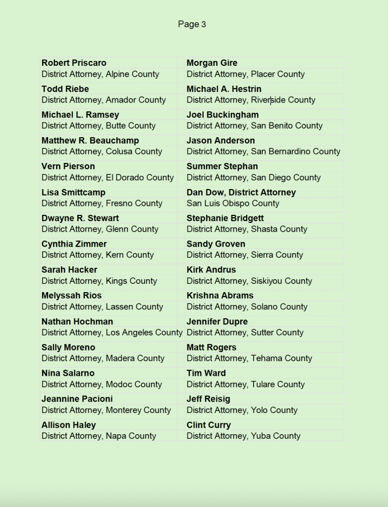 Nevada County District Attorney Jesse Wilson, was not named in the letter.