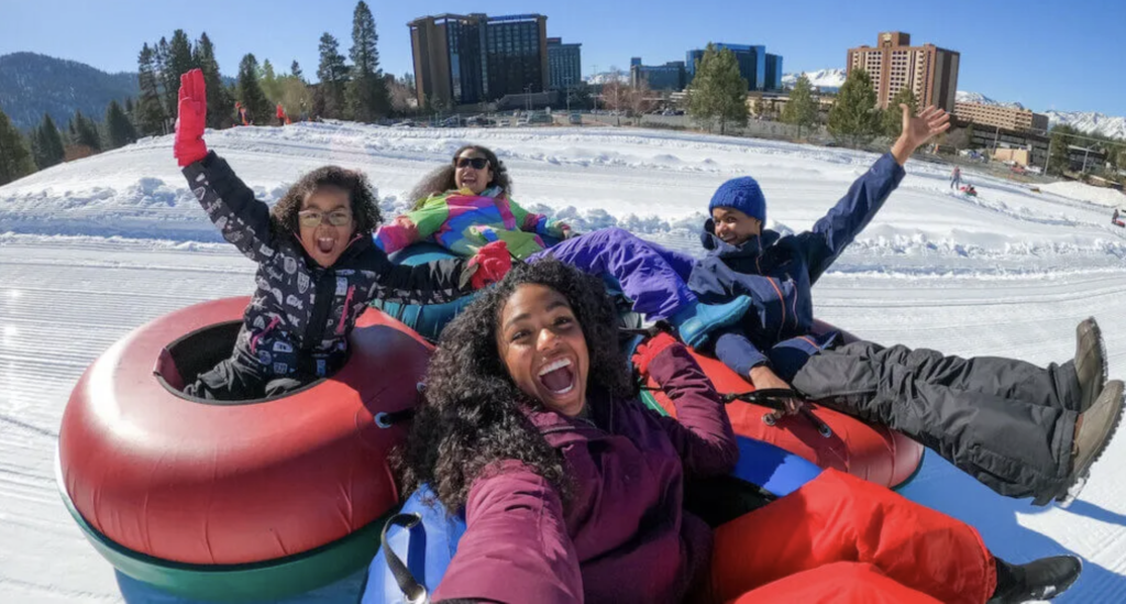 “The idea behind Local’s Day,” said Taylor Shearer, head of marketing and corporate events at Tahoe Snowmobiles and Tubing, “was to bring the community together to give local families and kids, especially those who may not otherwise have the opportunity, the chance to experience snowmobiling and tubing. We want to make winter activities on Lake Tahoe accessible and inclusive for everyone.”
