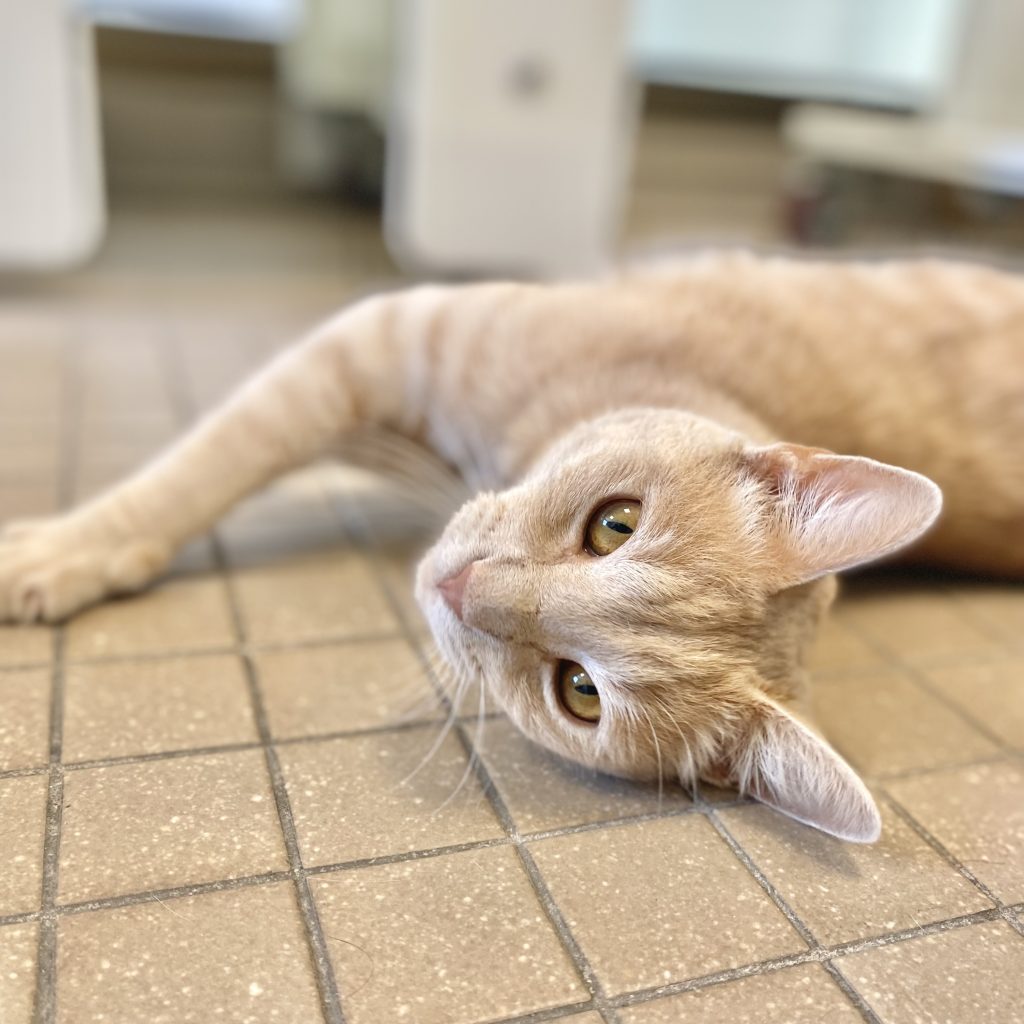 Don’t be fooled by his laid-back vibe; Cantaloupe has a playful side that comes out when there are toys involved. Give him a string to bat or a toy to chase, and he’ll show you his goofy, kitten-at-heart personality.