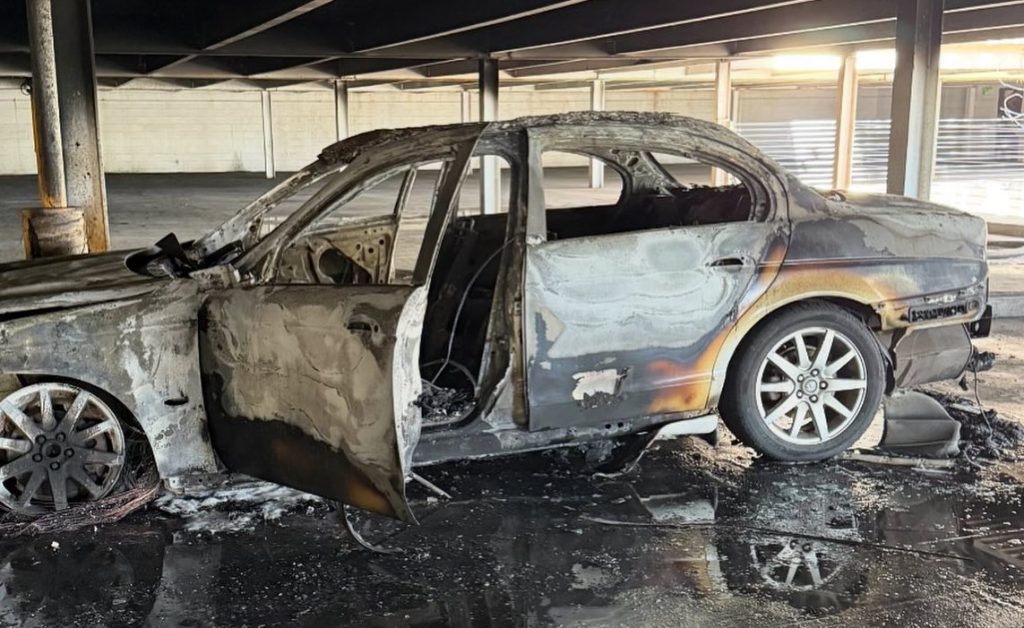 Upon arrival, fire crews observed a single vehicle with active fire involvement. Firefighters quickly initiated an offensive attack, containing the fire to the vehicle of origin and preventing damage to adjacent vehicles and the structure.